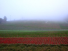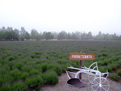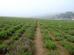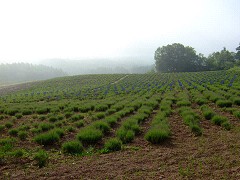 町営ラベンダー園。濃い霧に覆われて山頂付近は見えませんでした。