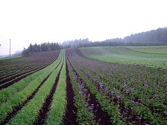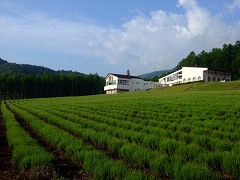 ファーム富田の平坦部に植えられたラベンダーが、富良野地方ではもっとも早く色づきます。