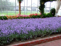 ハウス内のラベンダーは年間を通して開花するように調整しています。花に直接水を当てないことで見頃の期間を長く保ちます。