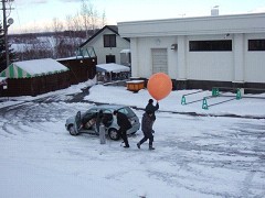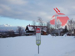 で知り、急遽私も確認に向かいました。まずは現地にと思いましたが日の出公園からはどう見えるかと思い、幸い前走車(町の職員でやはりバルーンを確認に来た)があったので除雪してない道を強引に登りきりました。