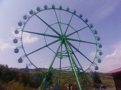 ところで世の中にはいろいろな観覧車があるものですね。私が最後にのったのはいつどこでだったか、原色でカラフルで、鉄骨が幾重にも重なった鉄の塊というイメージです。では実際に建設予定の観覧車はどのようなものか。いろいろ調べましたら、旭川市郊外のサンタプレゼントパークから運び込まれたものであることが分かりました。行ったことがなかったので画像検索したところ、私がイメージしていたものとはかなり趣の違う観覧車が確認できました。